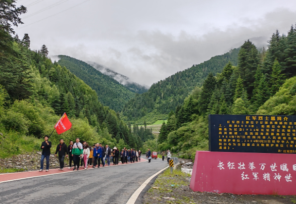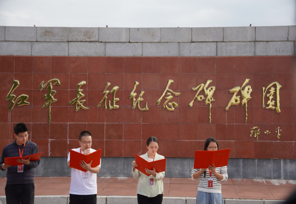 缅怀峥嵘历史,全体学员共同追寻红色记忆,重走长征路,在寒风中步行至亚克夏山工农红军烈士墓前肃静默哀,在细雨中穿越红原日干乔大沼泽,在阳光下瞻仰松潘红军长征纪念碑,在红色足迹里聆听微党课、参观若尔盖胜利曙光陈列馆,在红军长征纪念碑前朗诵《再走长征路》。